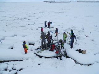 📸流氷での撮影は安全を考慮して干潮時にやります。