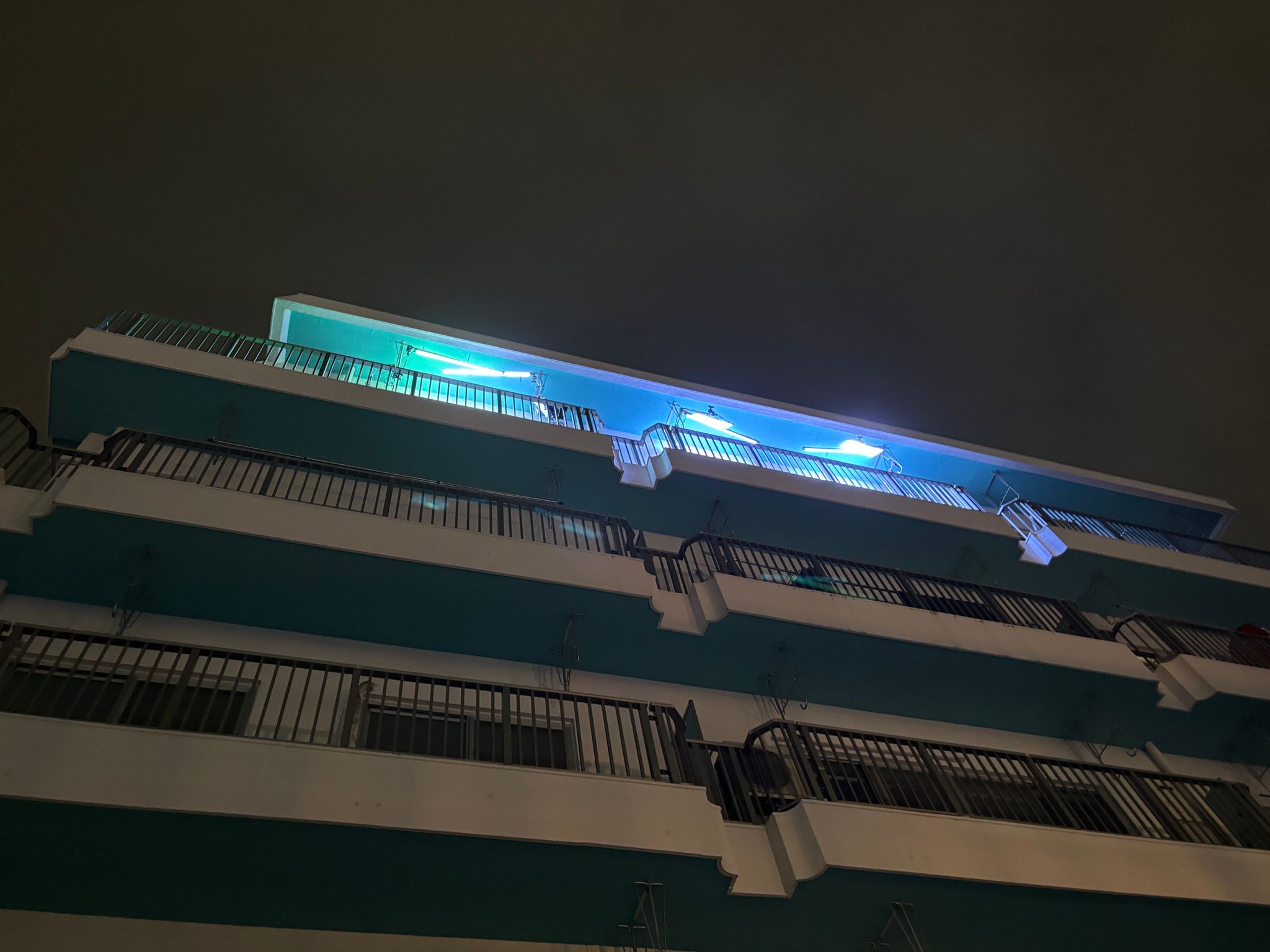 📸新宿のとあるマンションのベランダ・・・妖しくライトアップ。しかしさすがは歌舞伎町!馴染んでます。